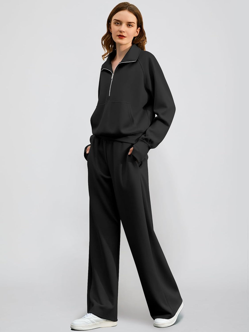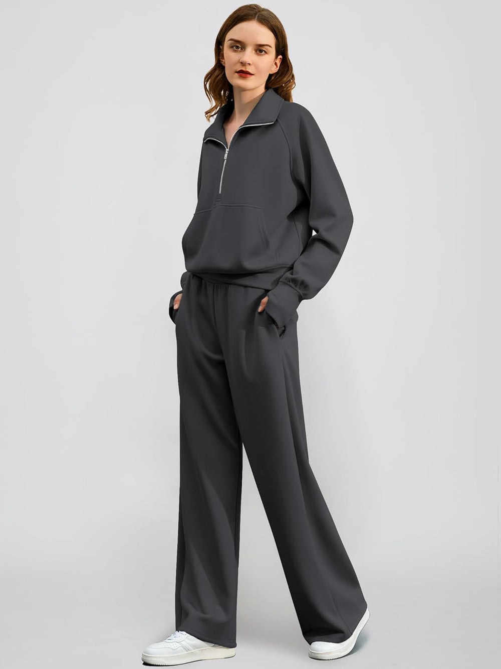 2024 Oversized Half Zip Sweatshirt Wide Leg Sweatpant Set Sweatsuit Tracksuit
