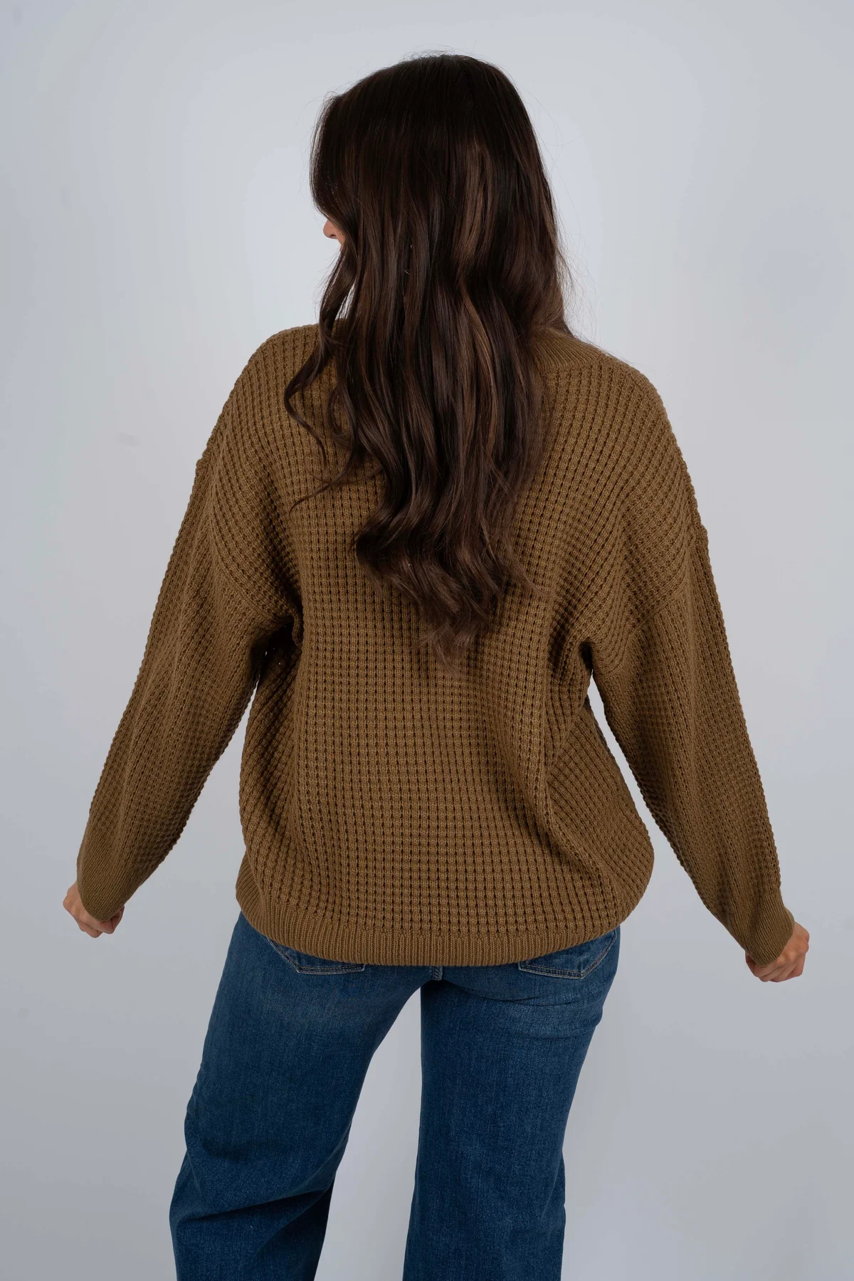 Stay cozy and stylish this winter in our All About Winter Sweater! Crafted with a textured waffle pattern, this classic knit sweater will keep you comfortable and fashionable all season long.