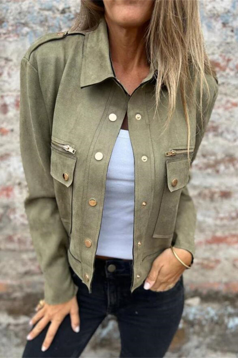 This durable and stylish jacket features a chest metal zipper and lapel, providing a sleek and modern look. The long sleeve design offers added protection and coverage, while the metal zipper adds a touch of edginess. Stay fashionable and functional with this versatile jacket.