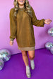 You are sure to create cozy memories when you wear this darling light camel colored sweater dress featuring soft knit material, a rounded neckline, long loose sleeves, and a relaxed silhouette that falls into a straight mid-thigh length hemline!