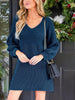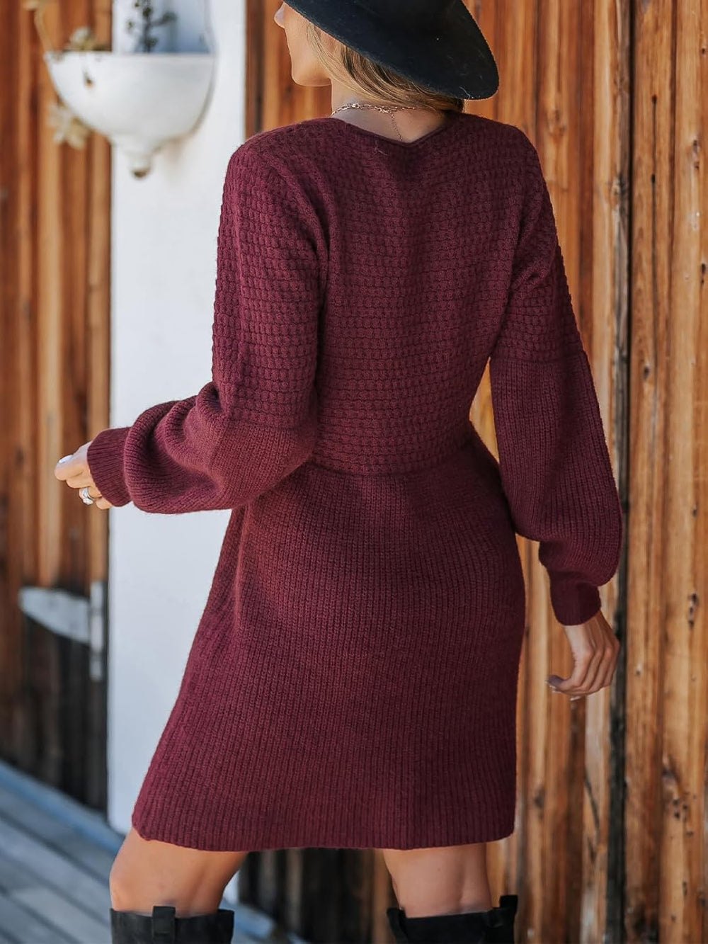 Honeycomb Knit V-Neck Mini Sweater Dress