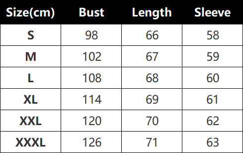 Sizes: S, M, L, XL, XXL, 3XL