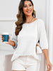 Rolled Round Neck Dropped Shoulder Slit Sweater