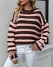 Striped Sweater Women Knitted Crew Neck Pullover Sweater