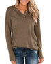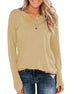 Women Solid Color Knitted Long-sleeved Leisure Round Neck Pullover Button Top T-shirt