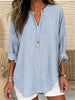 Women's Long Sleeve v-Neck Solid Color Loose Striped Shirt