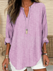 Women's Long Sleeve v-Neck Solid Color Loose Striped Shirt