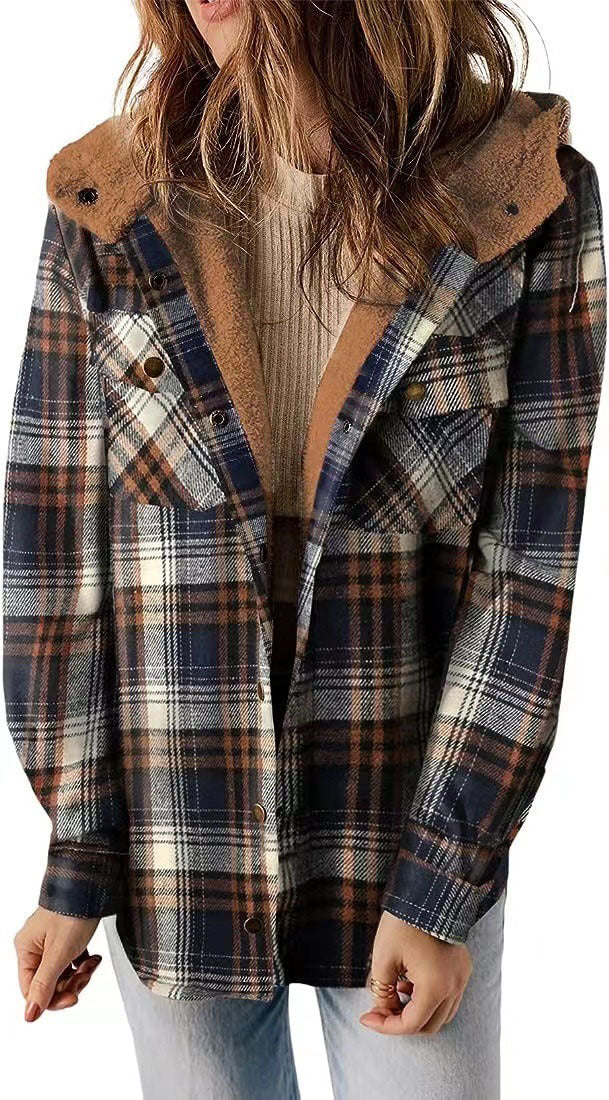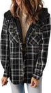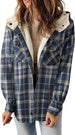 - FEATURES:Sherpa Lined, Plaid Pattern, Hooded Design, Front Button Closures, Long Sleeve with Button Cuffs, Boyfriend Style. Loose fit add a touch of effortless style to your wardrobe.
