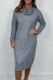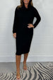 Women's Knit Solid Color High Neck Midi Dress