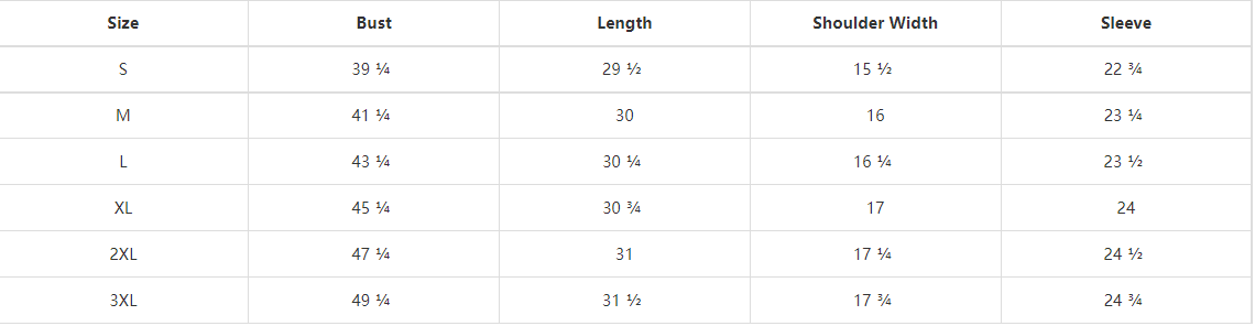 Shoulder Width (cm): S:39.5;M:40.5;L:41.5;XL:43;2XL:44;3XL:45